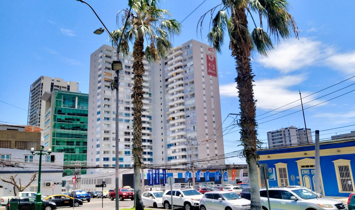 Apartemen di pusat Iquique, dua blok dari pusat bersejarah: Plaza Prat, Paseo Baquedano, di depan Caleta Riquelme, Emerald Museum, Aduana lima menit berkendara dari Zofri (ideal untuk mereka yang ingin membebaskan kendaraan). Jalan kaki tiga menit dari Plaza de Tribunales dan bank. Beberapa menit jalan kaki ke Playa Bellavista dan Cavancha. Sangat cocok untuk mereka yang suka tur berjalan kaki. Apartemen berperabot lengkap dengan parkir bawah tanah dan sentuhan akhir yang sangat bagus.