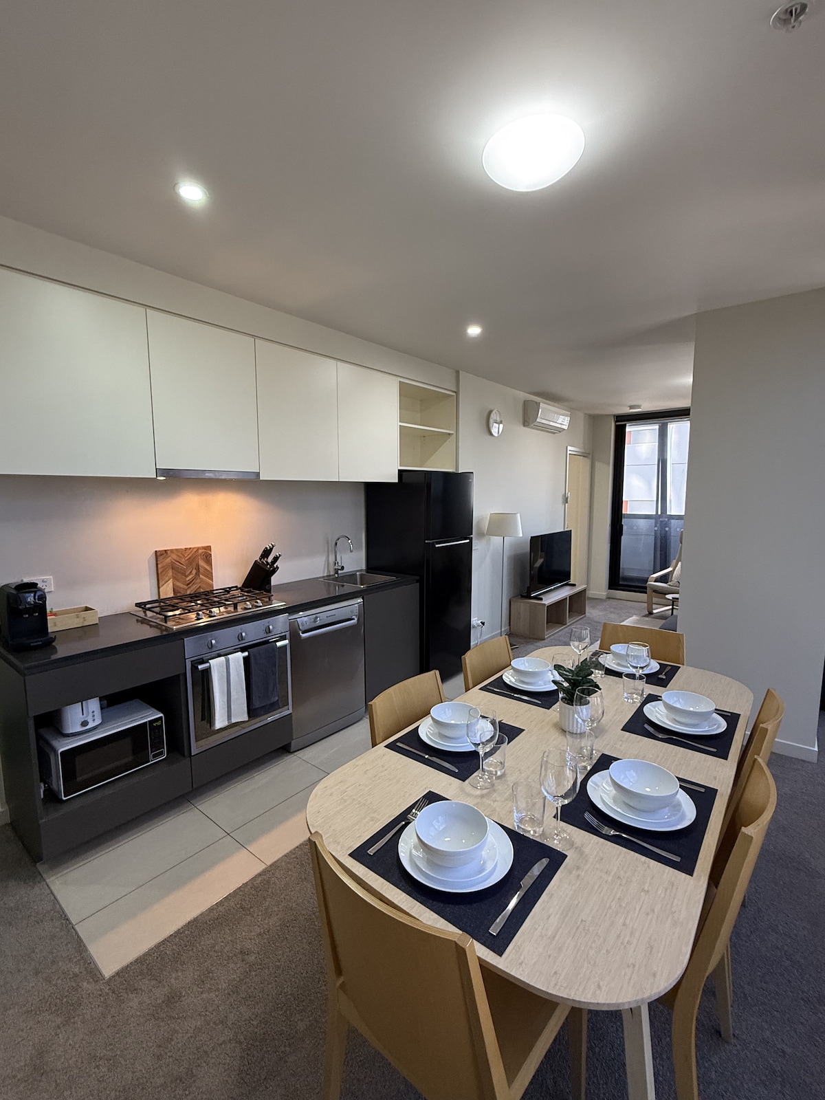 A tranquil space to call home while you're in Melbourne, your own 2 bedroom 2 bathroom apartment (64sqm Internal + 6sqm Balcony). Designed with sanctuary in mind simple modern and minimalistic. Enjoy the amazing views of the city skyline. This is a family friendly space. Located next to Southern cross station and the sky bus terminal. Situated in the free tram zone - everything Melbourne has to offer is at your finger tips - close to cheap eats, classy restaurants and hip cafe's.