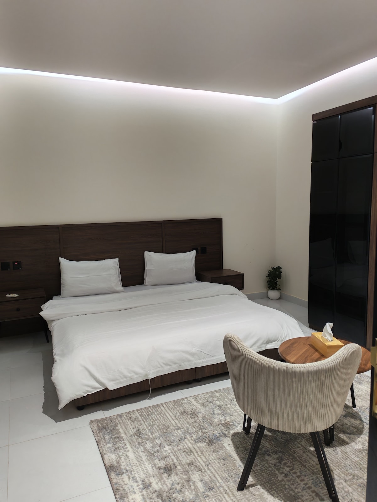شقة فندقية راقية بتصميم عصري وأثاث فاخر، تجمع بين الراحة والفخامة لتمنح الضيوف تجربة إقامة مميزة. تتكوّن من غرفة نوم وصالة وبلكونة ومطبخ متكامل، وتوفر أجواء دافئة وخدمات تضاهي أفضل الشقق الفندقية.