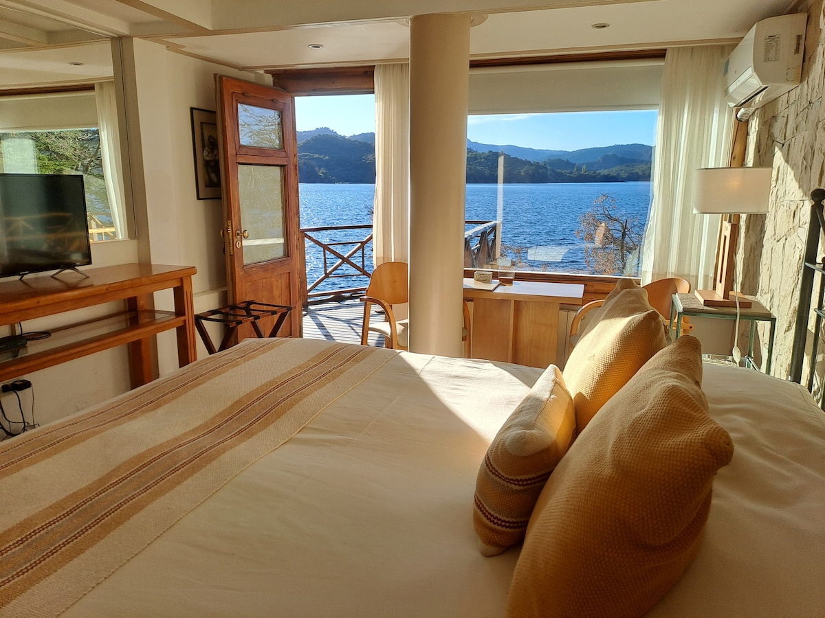 Ini adalah satu kamar dengan semua kenyamanan untuk beristirahat dan menikmati masa inap yang luar biasa. Tempat ini memiliki ruang makan mini yang menghadap Danau Aluminé, dapur lengkap (Kulkas, microwave, pemanggang roti, peralatan makan, peralatan makan, panci, dll.) dan kamar mandi pribadi. Di balkon terdapat pemanggang dan meja teras terpisah dengan pemandangan terbaik Danau Aluminé. Kami memiliki tempat parkir (tidak tercakup) di bagian dalam properti.
