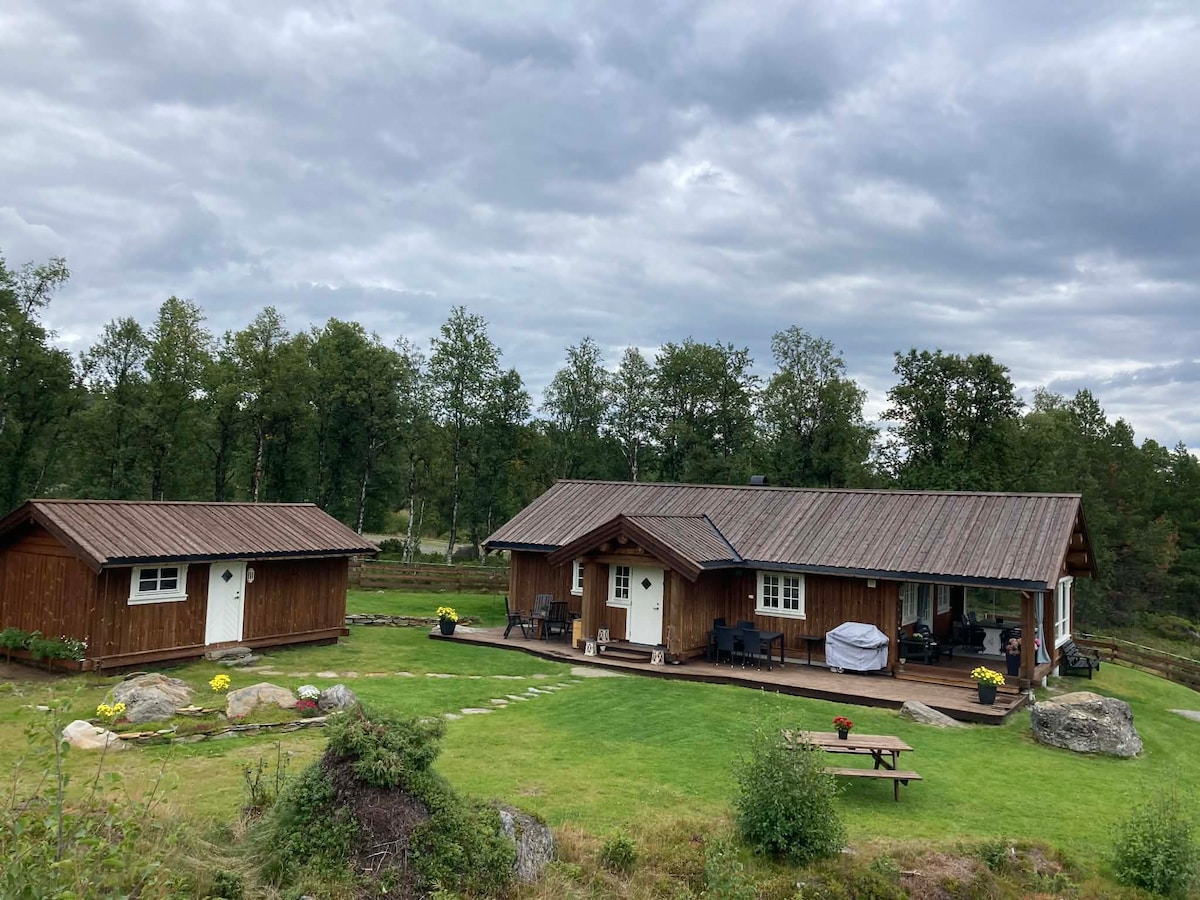 Welcome to Storrøsta! This is a refurbished farmhouse, originally built in 1937. It's located off the beaten track in the middle of nature. Storrøsta is a quiet retreat, overlooking the mountains and valley. Enjoy the silence and view at sunset from the patio or the living room - if you're lucky you'll have a moose visiting! The place is also great for kids. There's a trampoline and a slack line available in the summer, as well as outdoor games and bikes free for you to borrow.