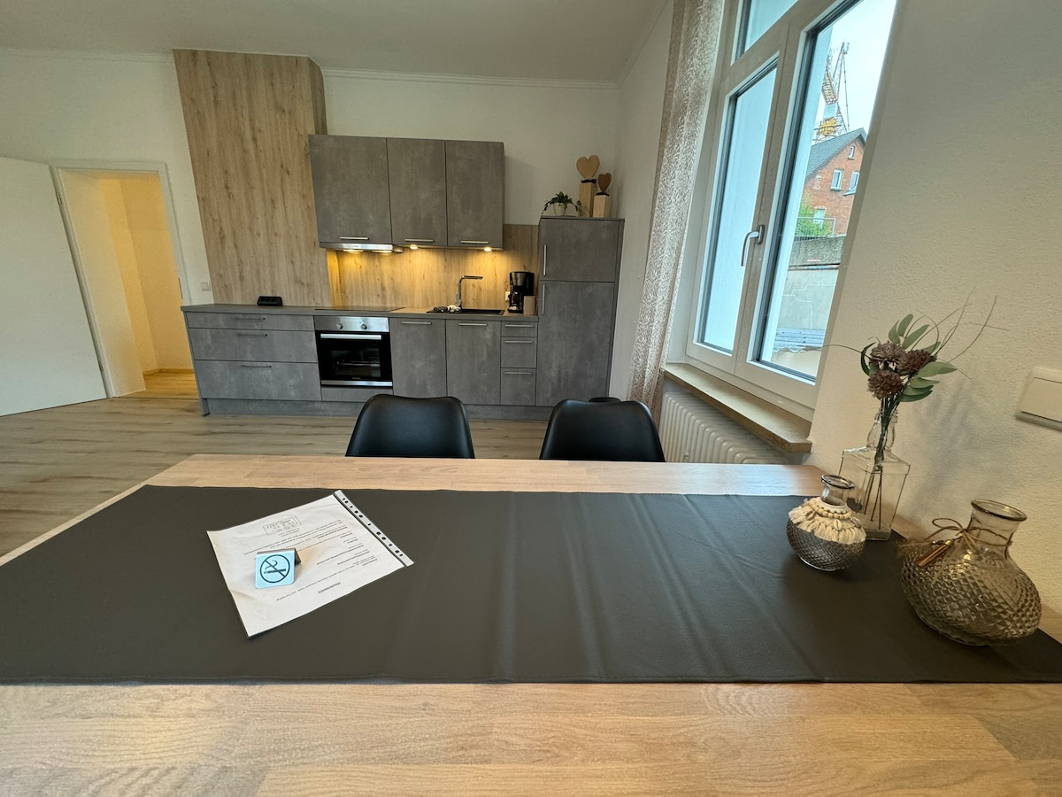 Apartemen berperabot bergaya di rumah semi - terpisah (bangunan baru) dengan fasilitas sebagai berikut: - Tempat tidur 140x200m - Kamar mandi pribadi - Tirai listrik - Pembuat kopi (termasuk Kopi) - Microwave sebagai unit kombinasi dengan udara yang disirkulasikan - Kulkas - TV - Wifi - Pengering rambut tamu - Pemanas di bawah lantai - kontrol ventilasi sentral - pintu kedap suara terpisah dengan bel/pembuka pintu - Lemari - Meja Makan - Peralatan Makan - Parkir gratis - Pengisian kendaraan listrik - Peralatan awal termasuk (seprai tempat tidur, handuk