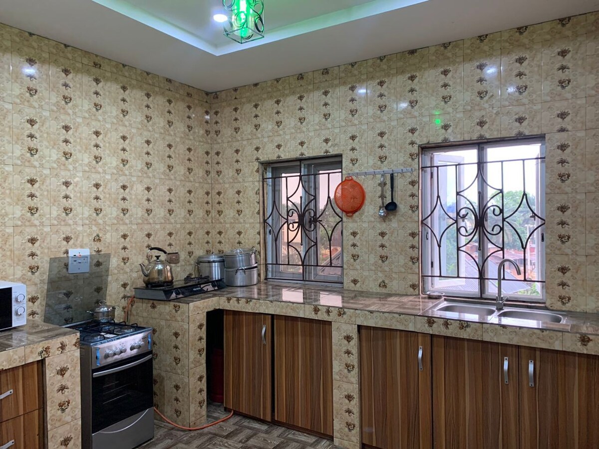 Selamat datang di bungalow dua kamar tidur kami yang indah dan nyaman yang terletak di pusat kota Asaba. Baik Anda di sini untuk bekerja atau bersantai, Anda akan menikmati pasokan listrik 24/7 tanpa gangguan dan internet berkecepatan tinggi agar Anda tetap terhubung. Keselamatan dan kenyamanan Anda adalah prioritas utama kami. Properti ini dipantau dengan kamera pengawas, dan keamanan di lokasi untuk memastikan ketenangan pikiran. Pembantu rumah tersedia untuk membantu menjawab pertanyaan atau kebutuhan selama Anda menginap. Kami tak sabar menyambut Anda—rumah Anda yang jauh dari rumah menanti!