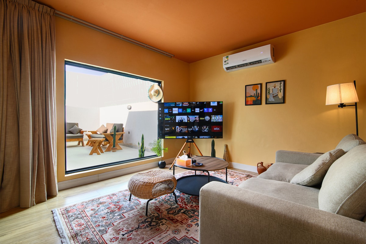 Selamat datang di liburan pribadi Anda di Riyadh, tempat kenyamanan dan kemudahan bersatu. Kamar Anda memiliki tempat tidur busa memori berukuran queen yang mewah dengan seprai lembut untuk tidur malam yang nyenyak. Dengan pintu masuk pribadi, Anda memiliki privasi lengkap dan sangat dekat dengan kafe, mal, dan restoran yang sibuk, cocok untuk menjelajahi kota. Nikmati fasilitas modern seperti flatTV 50 inci, Wi - Fi berkecepatan tinggi, dan area duduk luar ruangan yang nyaman. Rasakan keramahtamahan yang dipersonalisasi dan pesan tempat peristirahatan Anda yang damai hari ini.