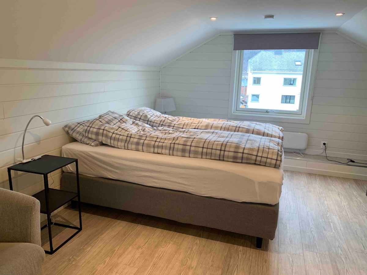 Apartemen studio di lantai 2 dengan pintu masuk terpisah yang berlokasi di Åndalsnes. Lokasinya sekitar 500 m dari Stasiun Romsdalsgondolen Fjord, stasiun kereta api dan bus, dan sekitar 100 m dari jalur pendakian Rampestreken/Romsdalseggen. Apartemen ini terdiri dari kamar+kamar mandi, dapur kecil sederhana dengan area makan dan double bed dengan lebar 150 cm. Perhatikan tinggi langit - langit hanya 2 meter dengan langit - langit miring ke samping(lihat gambar), serta dapur kecil tidak memiliki kipas angin di atas kompor. Parkir di halaman.