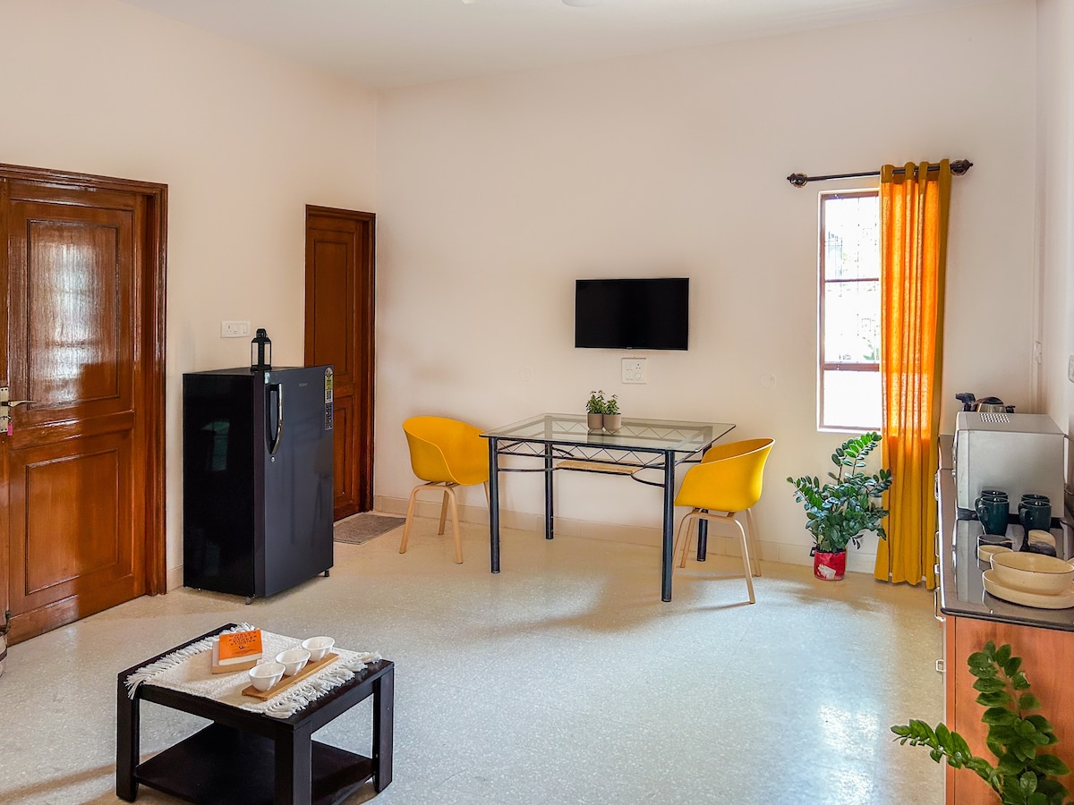 OpenSky Penthouse is a completely private top-floor retreat designed for ultimate comfort and privacy. This spacious, spotless, fully furnished stay features AC, smart TV, sofa, double bed, wardrobe, fridge, and high-speed Wi-Fi. The modern bathroom includes a geyser and essentials. Enjoy a large private terrace—perfect for relaxation, yoga, and breathtaking sunrises and sunsets. Ideal for families, couples, and business travelers seeking a serene escape.