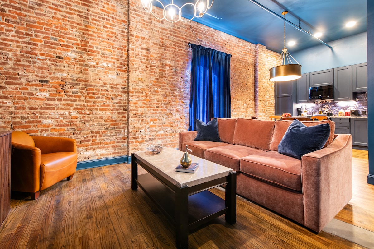 Suite yang luas ini memberi penghormatan kepada Muhammad Ali Louisville sendiri dengan gaya perkotaan sejati! Terletak di sebuah gereja tahun 1843 yang direnovasi dengan penuh kasih sayang, tempat ini menawarkan tempat tidur berukuran king, kamar mandi lengkap, dapur kecil dengan meja untuk 4 orang, dan sofa lounge yang nyaman untuk tidur 2 orang. Anda akan berada di tengah - tengah semua yang ditawarkan Market Street — hanya beberapa langkah dari Rabbit Hole Distillery, Nouvelle Wine Bar, Garage Bar, dan masih banyak lagi. Perjalanan 10 menit dari bandara, setengah mil dari Slugger Field, dan 1 mil dari YUM! dan Pusat Konvensi.
