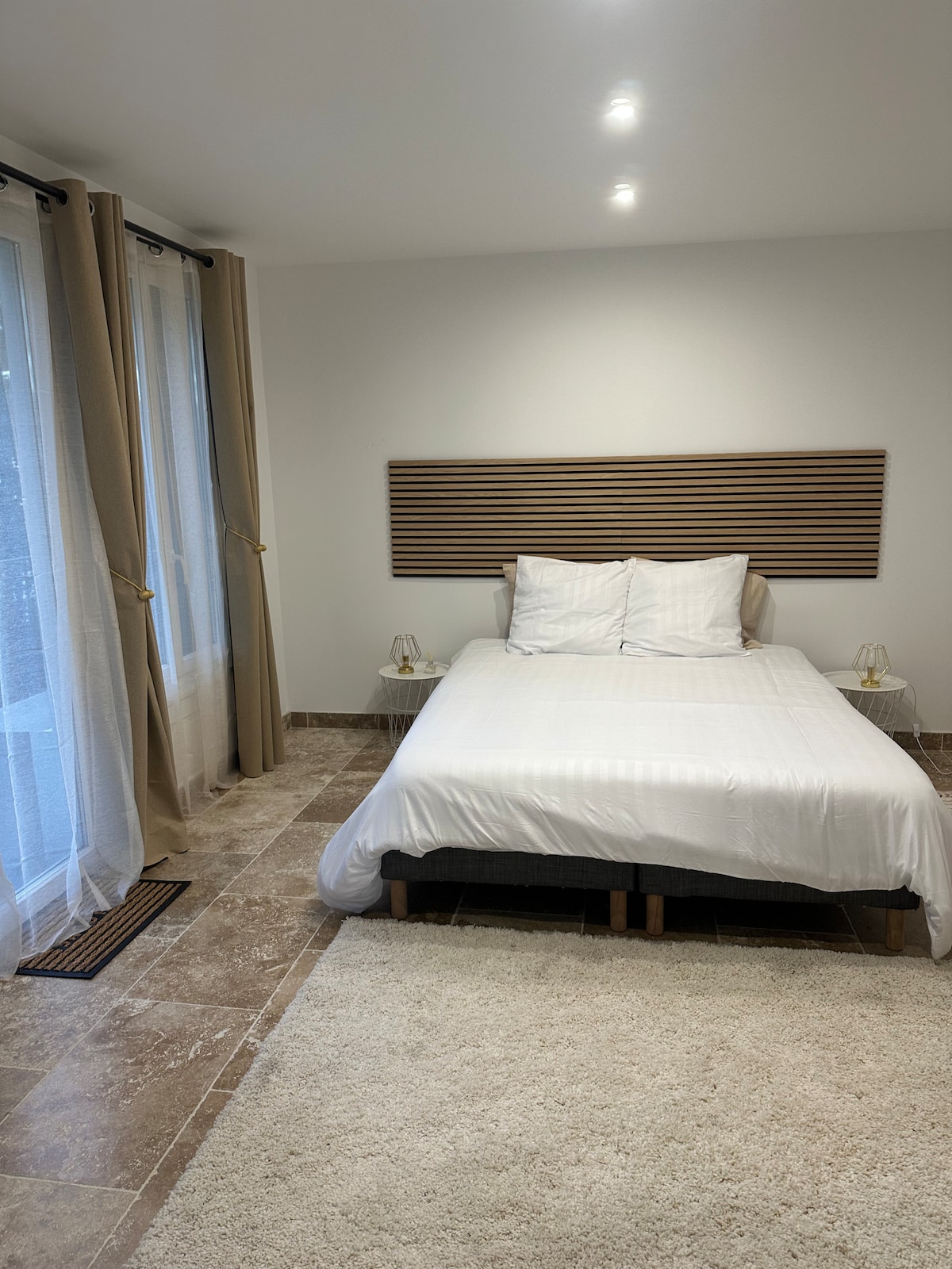 Nikmati karakter suite 44m2 yang luas di lantai atas rumah batu saya yang indah ini. Baru direnovasi, suite ini didekorasi dengan gaya yang bersih. ✓ Pintu masuk terpisah Tempat tidur ✓ King (180/200) dibuat saat kedatangan ✓ Kamar mandi pribadi Toilet ✓ terpisah ✓ Handuk mandi disediakan ✓ Wi - Fi. ✓ Smart TV ✓ Area lounge ✓ Kulkas mini ✓ Pembuat Kopi ✓ Ketel air panas. ✓ Nuansa blackout ✓ Tempat parkir Bagaimana kalau hijau untuk satu malam atau lebih? 🌳