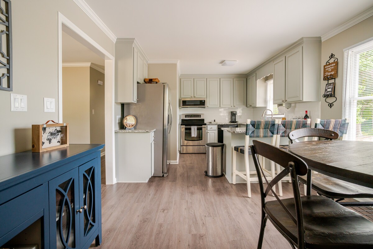 Rumah 3 kamar tidur, 2,5 kamar mandi yang menawan di pusat kota Fuquay - Varina. Terletak di pusat kota untuk berjalan kaki ke pusat kota Fuquay yang bersejarah serta pusat kota Varina. Ramah keluarga dan anjing dengan halaman belakang berpagar untuk anak - anak, anjing dan bersantai. Dekorasi vintage modern dengan banyak cahaya alami dan fasilitas bermanfaat. Dapur dilengkapi dengan peralatan lengkap untuk masa inap Anda dan tersedia cucian.