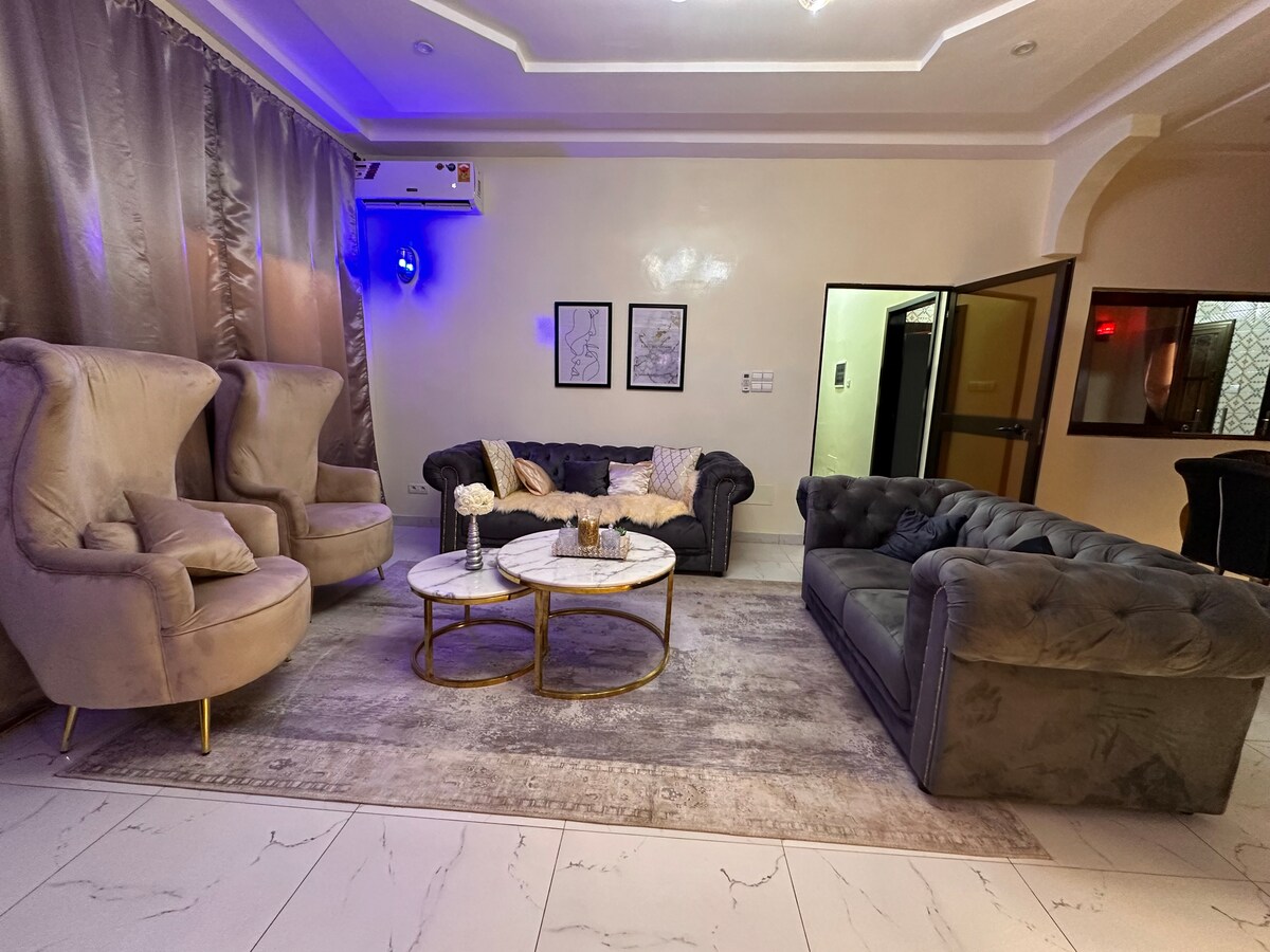 Selamat datang di apartemen modern kami di Lome. Nikmati kenyamanan dan gaya di apartemen berperabot lengkap ini yang berlokasi di Amadahome, 25 menit ke pusat kota Lome, 27 menit ke bandara, lingkungan tinggal yang tenang. Kamera pengawasan luar ruangan dan petugas keamanan shift malam. Layanan sewa mobil tersedia Untuk memastikan kenyamanan dan menghormati tempat, semua tamu diizinkan membawa hingga 2 pengunjung sekaligus. Terima kasih atas pengertian Anda. {Wifi, air, dan gas memasak gratis} Tamu bertanggung jawab atas listrik