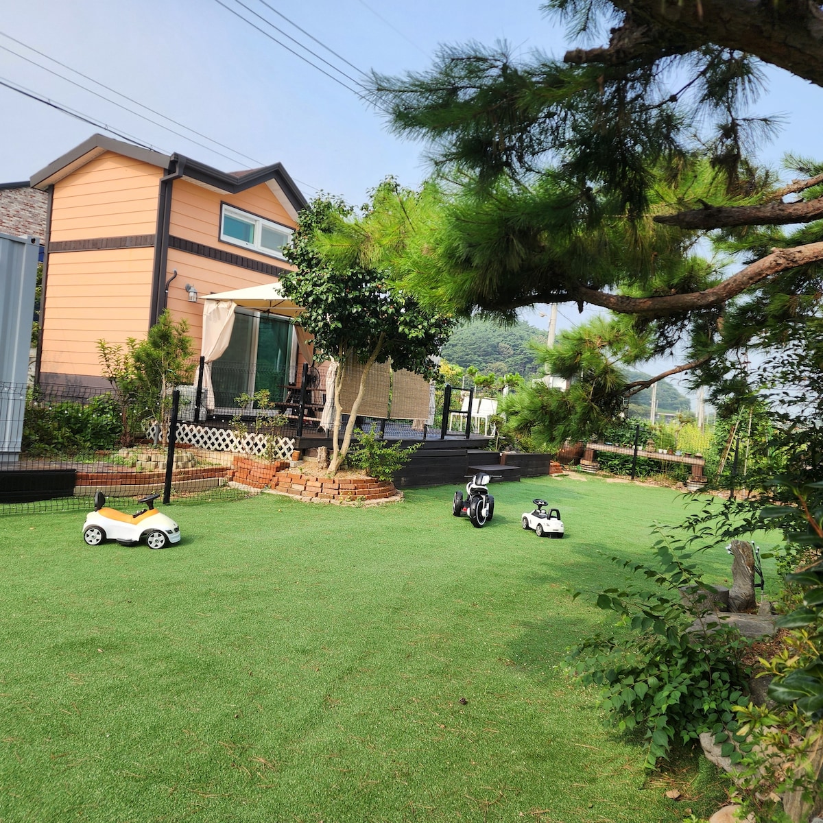 Ini adalah pension Taean yang terletak di dekat pantai dan taman.