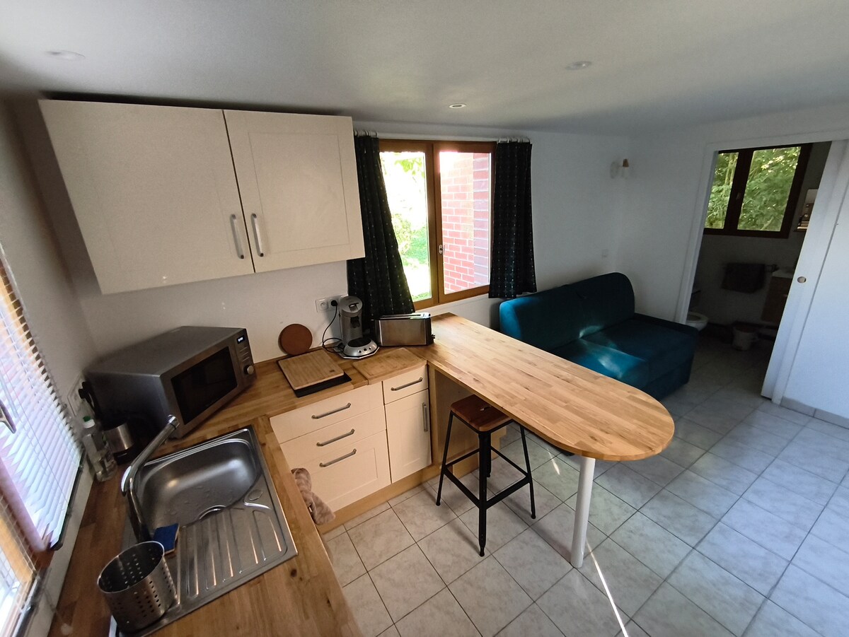Terletak di Béthunois, datang dan bersantai di rumah kami yang hangat dan nyaman. Rumah memiliki: 1 kamar tidur dengan perlengkapan tempat tidur 180x200 dan SPA - nya. satu kamar mandi dengan toilet dan pancuran Ruang tamu terbuka dengan ruang tamu dan akses ke Netflix. Dapur dengan mesin cuci piring, mesin cuci, pengering, oven, pembuat kopi (tersedia teh dan kopi). Rumah ini terletak menghadap danau dan memiliki lahan tertutup, teras dan barbekyu. Rumah ini juga ber - AC.