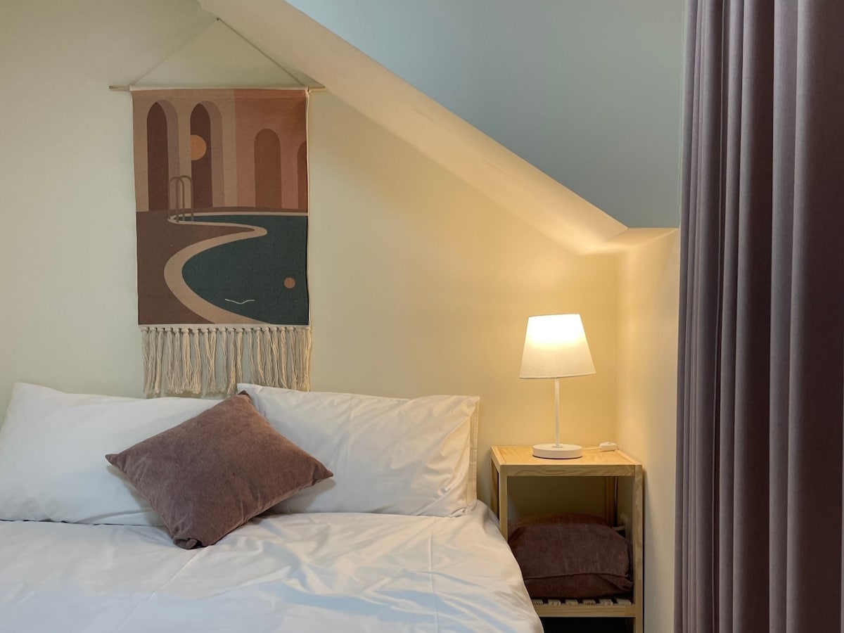 * Instruksi * 1. Waktu check-in/check-out akan berubah mulai 1 Juli 25. (Check in pukul 19.00, Check out pukul 15.00) Saya harap Anda bisa beristirahat dengan nyaman meskipun Anda menginap hanya satu hari! 2. Saat memesan untuk 3 orang, kami menyediakan topper super single + duvet + bantal dan 2 handuk tambahan 😊 Halo! Saya Yeri, penyelenggaranya. Waktu untuk membaca dikelilingi oleh buku, waktu untuk mendengarkan musik sambil melihat ke luar jendela dengan tenang, waktu untuk duduk di meja yang luas dan melebarkan imajinasi Anda. Ini waktu favorit saya, dan ini waktu yang bisa Anda nikmati dengan bebas. Saya percaya bahwa pasti ada kebebasan yang hanya dapat dilihat dan dirasakan ketika Anda jauh dari kehidupan sehari-hari. Jadi mungkin saya merencanakan sedikit kebebasan di sini, di Pulau Crescent. Saya harap Anda menikmati kebebasan Anda di ruang yang dipenuhi dengan selera dan kebebasan saya ini. Silakan lihat foto lainnya di Instagram, yang gratis ~! (@ jayu.inn)