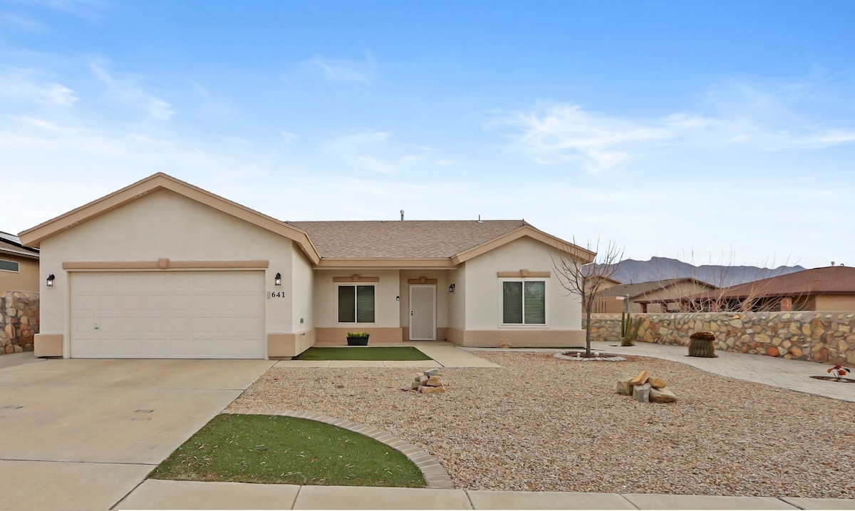 Bersantai di gurun ini seperti rumah liburan atau sewa jangka pendek. Hanya 2 menit dari I -10. Dapur konsep terbuka 3 kamar tidur ini - area ruang makan - ruang tamu adalah rumah yang tepat untuk menghabiskan waktu jauh dari rumah. Outlet Shoppes of El Paso & West Town Marketplace Restaurants, Movies, WetnWild, Vado speedway. Berbelanja hanya berjarak 12 -15 menit & banyak lagi. Transmountain Providence Hospital & UMC untuk perawat perjalanan juga hanya berjarak beberapa menit. Untuk keselamatan Anda, Bel Cincin & kamera menghadap ke rumah depan.