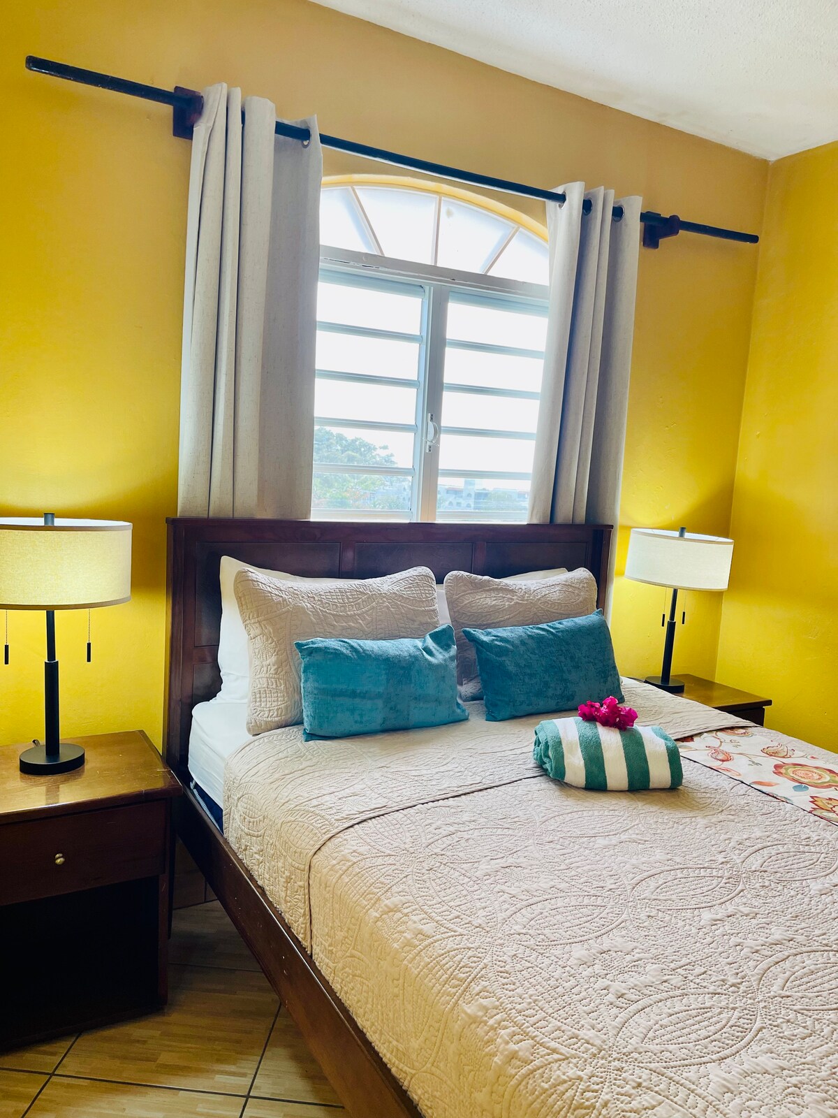 Terletak di jantung semuanya dengan berjalan kaki sepuluh menit ke Pantai Jolly yang bersih dan Jolly Harbour yang aktif secara sosial, kamar kami memiliki studio yang unik dan nyaman dengan suar Karibia! Kamar interior kecil ini (tanpa pemandangan; jendela menghadap lorong) memiliki tempat tidur berukuran penuh, kedai kopi dengan microwave, dan kulkas mini. Terletak di lantai tiga Jolly Castle. Harus menaiki tangga. Tidak ada pemandangan dari kamar interior ini.