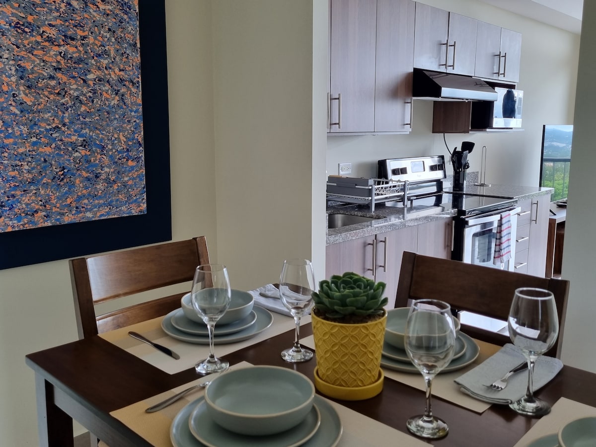 Selamat Datang di Rumah Anda yang Jauh dari Rumah Nikmati apartemen yang indah ini yang terletak di gedung baru dan modern, di area yang aman dan pusat. Anda akan menikmati pemandangan pegunungan yang menakjubkan. Fitur Apartemen: 2 Kamar Tidur Nyaman: Setiap kamar tidur dilengkapi dengan tempat tidur Queen yang nyaman dan AC untuk memastikan kenyamanan Anda. 2 Kamar Mandi Lengkap dengan Air Panas Dapur Berperabotan Lengkap Teras renang pribadi. Internet Berkecepatan Tinggi Ruang kerja Akses ke kolam renang dan gimnasium