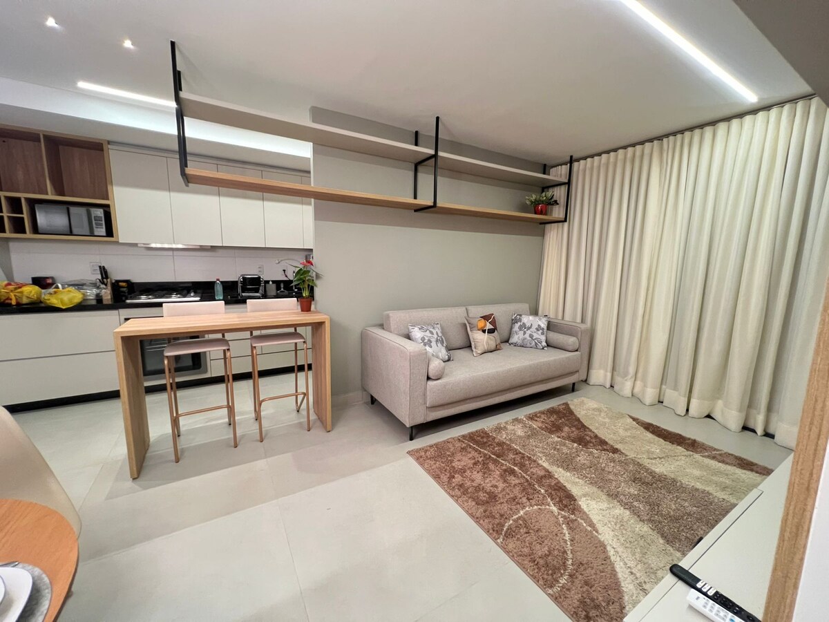 Apt 45 m2. Kamar tidur: Tempat tidur queen,lemari, meja kantor, TV 4K 50", AC, seprai tempat tidur/mandi. Ruang tamu: tempat tidur sofa, TV 4K 50", AC,meja, dan 4 kursi desain Italia. Dapur:lemari,meja dapur, 4 kompor kompor,kulkas, oven listrik, oven microwave, pembuat kopi listrik, filter air, pembuat sandwich, wajan,peralatan makan. Kolam renang infinity, hidro,sauna, pusat kebugaran,ruang bermain, ruang pesta, ruang gourmet. 1 tempat parkir. Pramutamu dan keamanan 24 jam. Kami punya apartemen lain