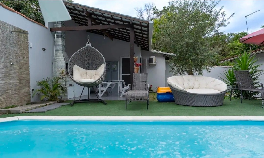 Rumah nyaman Anda menanti Anda di Cabo Frio! Nikmati masa inap santai di rumah 4 kamar tidur (3 en-suite) modern kami, 500 meter dari Praia do Forte dan dekat dengan bar dan restoran terbaik. Jacuzzi pribadi yang dipanaskan di area luar ruangan yang menampung hingga 6 orang. AC di semua ruangan, ruangan besar terintegrasi dengan dapur lengkap, area gourmet dengan area barbekyu dan balkon dengan tempat tidur gantung untuk bersantai. Cocok untuk keluarga dan rombongan, dengan Wi - Fi, pancuran luar ruangan, dan garasi untuk 4 mobil.