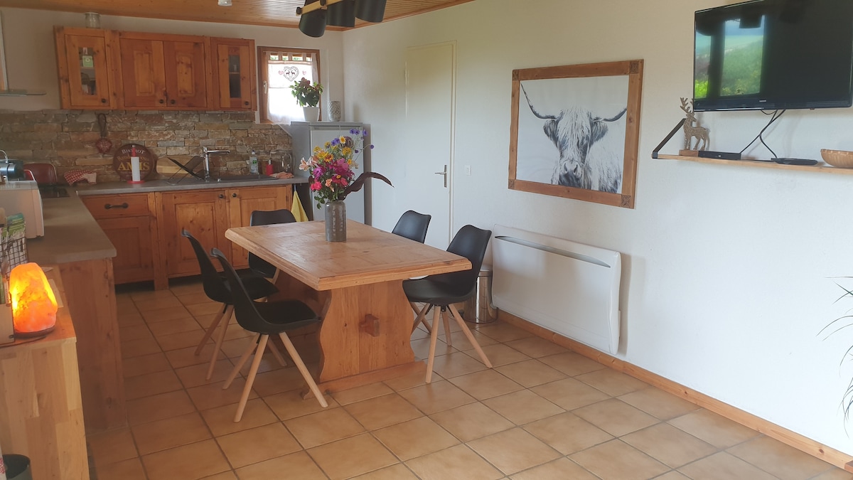 1 KAMAR TIDUR 2 ORANG+ 1 TEMPAT TIDUR SOFA 2PERS. per apartemen. Pencinta alam, Anda ingin bermain ski, mendaki, menunggang kuda, menikmati kedamaian untuk memulihkan energi di ketinggian 950 meter, chalet ini adalah tempat yang sempurna untuk beristirahat dengan kehidupan sehari - hari Anda. Di lahan seluas 2000 meter persegi, anak-anak Anda dapat dengan aman melampiaskan kekesalan, Anda dapat mengagumi Alpen sambil bersantai di teras dan menikmati produk lokal.