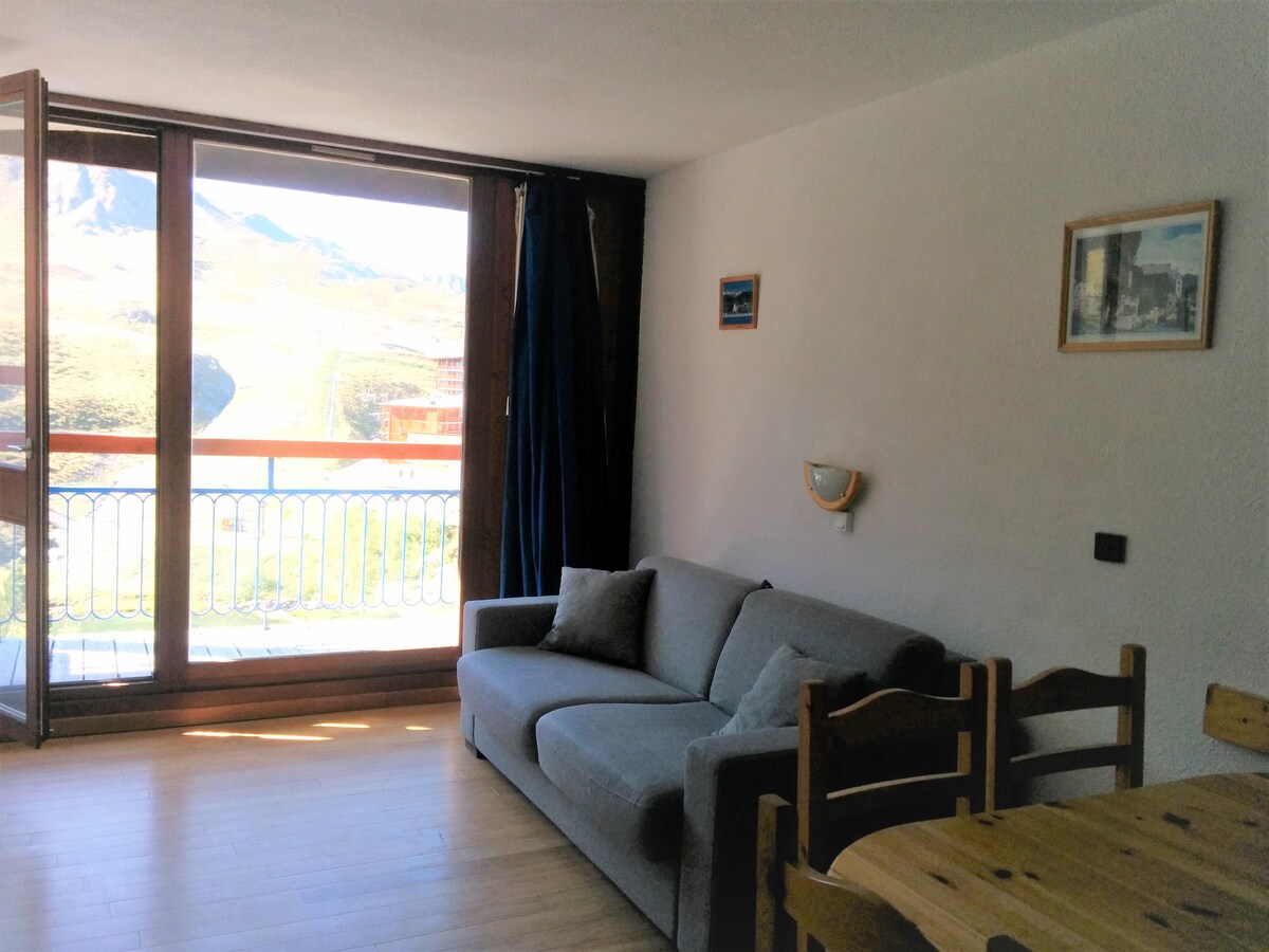 Apartemen cantik N°518 Aiguille rouge, ideal untuk 4 orang, pintu masuk di area tidur dengan 1 tempat tidur susun, koridor, kamar mandi wc, dapur kecil yang dilengkapi dan dilengkapi yang menghadap ruang tamu dengan 1 klik clac, balkon akses langsung dengan pemandangan pegunungan yang tidak terhalang. Loker ski. Akses langsung ke lereng, ski. Sediakan seprai berpinggiran karet, sarung duvet, sarung bantal, seprai toilet. Layanan kebersihan disediakan di antara setiap penyewa untuk menghormati kebersihan semua orang.