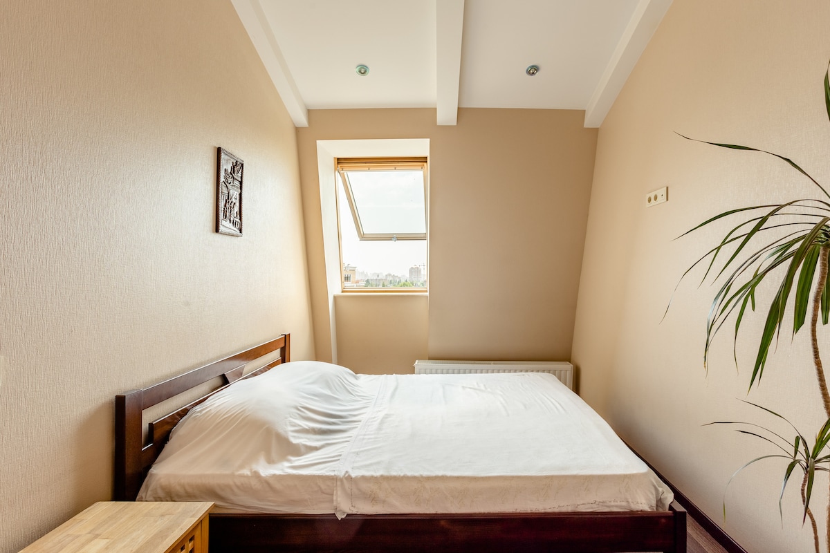 Apartemen yang terletak di “pusat tenang” bersejarah Odesa, terselip di halaman yang menawan dan penuh warna. Di sini Anda akan menginap di pusat kota sambil menikmati kedamaian dan ketenangan, terlindung dari kebisingan jalanan yang ramai — kombinasi langka antara ketenangan dan sentralitas. Jalan Deribasivska hanya berjarak 1 km, berjarak 10 menit berjalan kaki menyusuri Jalan Preobrazhenska, melewati Alun-alun Soborna. Apartemen ini menampilkan aksen biru kehijauan, yang terinspirasi dari warna tenang Laut Hitam pada hari tanpa angin.