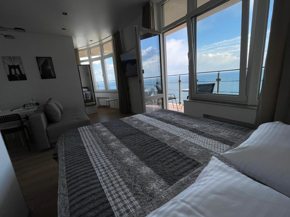 Apartemen baru dengan pemandangan laut, hanya 3 menit dari pantai berpasir! Dua kamar terpisah dan dua balkon dengan pemandangan laut: kamar tidur dengan tempat tidur dan dapur - studio dengan tempat tidur sofa. Wilayah ini ditutup dan aman. Terdapat kafe dan taman bermain anak - anak. Toko kelontong dan restoran bisa ditempuh dengan berjalan kaki.