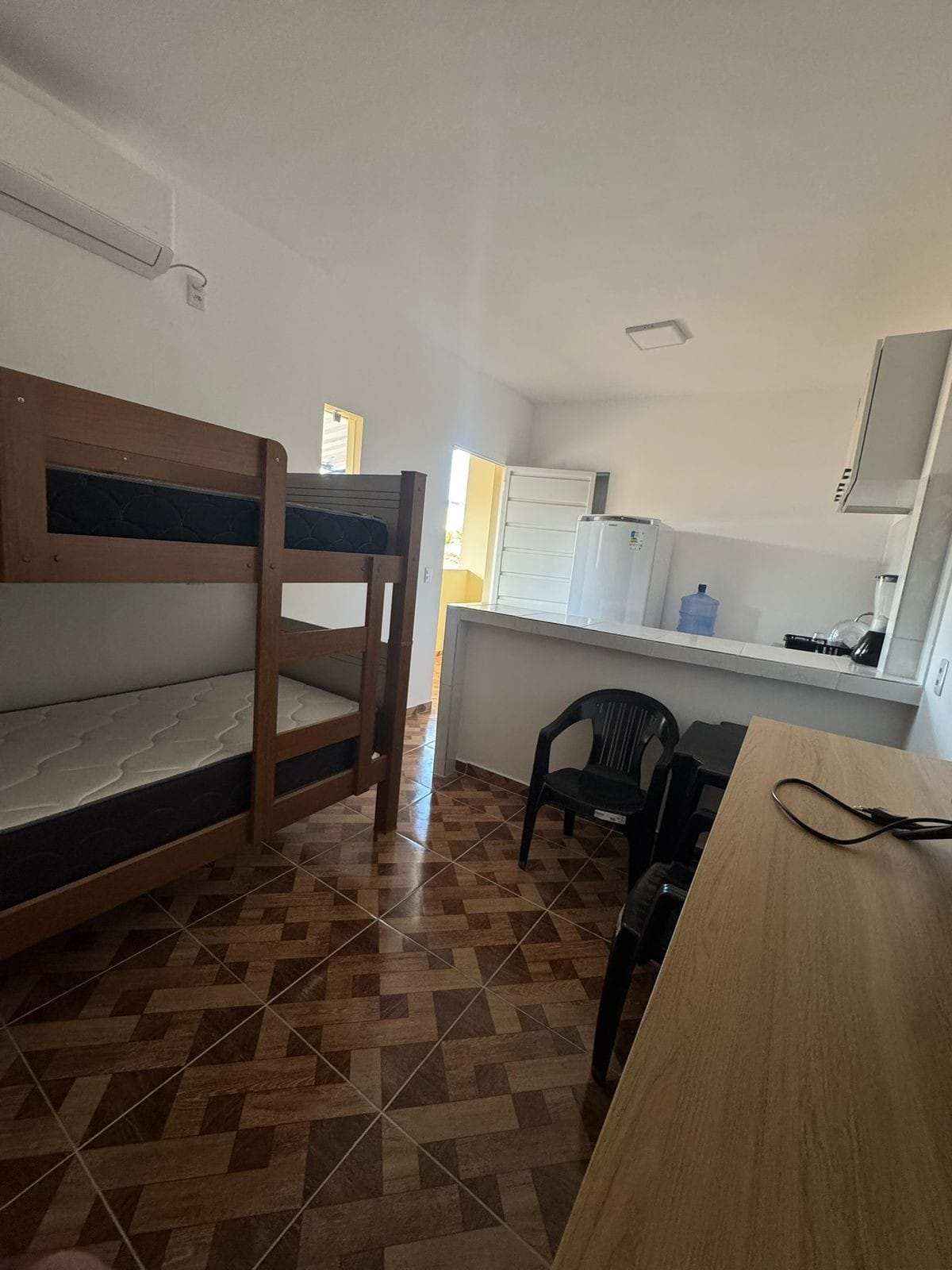 Divirta-se com toda a família neste lugar cheio de estilo. Onde você vai encontrar um Flat Studio com 01 quarto com 01 cama de casal e 01 de solteiro com ar condicionado, Sala com TV e arcondicionadeoe 01 sofá cama que acomoda 02 pessoas. Mesa de jantar e utensílios completos de cozinha.