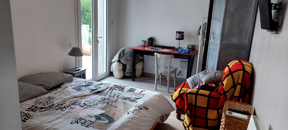 Marc dan Dorothée menyambut Anda ke bed and breakfast di rumah keluarga besar mereka, "la Folia ". Kamar "La Parisienne" berlokasi di lantai 1. Dari 18m2, dilengkapi dengan double bed 140*190, dan wastafel sudut. Tempat tidur single dapat ditambahkan atas permintaan. Toilet dan pancuran berada di luar kamar tidur dan dapat diakses dari tempat pendaratan. Anda akan memiliki akses ke ruang umum besar dan area dapur kecil. Sarapan sudah termasuk dalam harga.