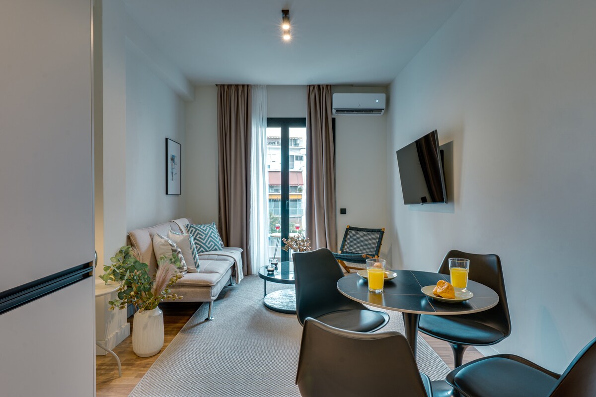 Selamat datang di apartemen lantai dua yang bergaya dan modern ini, yang terletak di pusat Kypseli hanya beberapa langkah dari toko, kafe, dan restoran. Tempat ini memiliki satu kamar tidur yang nyaman, dapur lengkap untuk makanan lezat, ruang tamu yang nyaman, dan TV pintar. Sangat cocok untuk pasangan, wisatawan solo, atau tamu bisnis. Apartemen ini merupakan bagian dari bangunan butik dengan fasilitas bersama, termasuk gym, jacuzzi, sauna, dan ruang pertemuan yang menawarkan kenyamanan dan sentuhan kemewahan untuk masa inap Anda di Athena.
