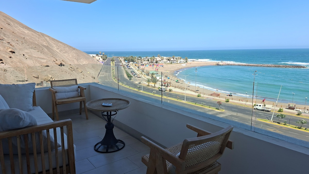 Apartemen baru dengan pemandangan laut yang spektakuler, terletak di depan salah satu pantai terbaik di Arica (Laucho), beberapa langkah dari restoran, pulau Alacrán, dan pusat bersejarah kota. Perabotan lengkap dengan peralatan mewah dan fasilitas terbaik, 1 tempat tidur king, TV 75", 1 sofa/tempat tidur, 1 sofa/tempat tidur, kursi kulit yang luas dan nyaman, kursi kulit yang luas dan nyaman, tirai hitam, tirai hitam, area kerja, handuk mandi, setrika pakaian, kulkas besar. Dengan kolam renang dan parkir gratis di dalam kondominium.