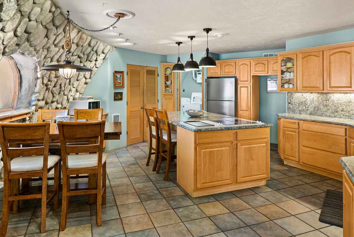 Ditampilkan di majalah karena arsitekturnya yang menakjubkan dan lokasinya yang seperti taman nasional, Kastil Gua 2,5 lantai ini menampilkan tebing interior, lantai kayu berpemanas, tangga melingkar yang sempit, dan kompor kayu di ruang tamu setinggi 24'! Pemandangan menakjubkan dari raja, ratu, jacuzzi, meja dan atap penulis yang inspiratif. Liburan yang nyaman dan mewah, tempat peristirahatan pribadi atau romantis yang sempurna di samping jalur taman liar. Tebing granit alami yang menjulang tinggi menciptakan interior yang terang dan seperti gua dengan panorama spektakuler.