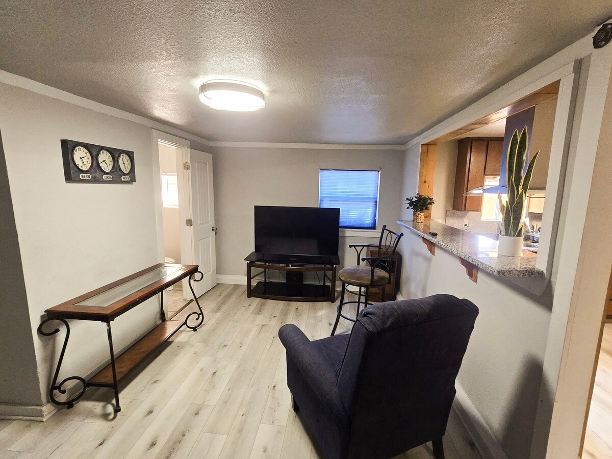 Nikmati pengalaman bergaya di efisiensi yang berlokasi di pusat kota ini. •Suite tamu pribadi • Tidak ada area bersama •Pintu masuk pribadi • Patio pribadi dengan meja dan kursi bistro (diperbolehkan merokok) • AC & pemanas individu •Kulkas/microwave/Keurig •Netflix/Prime/Fubo • Lingkungan tinggal tenang di sebelah taman kota Lokasi yang nyaman: Arlington Hosp District – 3 mil, Stadion/Distrik Hiburan - 6 mil, UTA - 2 mil, Pusat Kota - 3 mil •Izin #22 - 036212 - STR. Kamera ring digunakan 24/7 di luar unit.