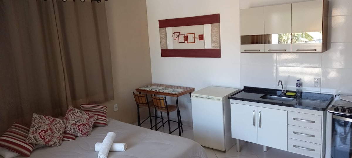 Studio yang sangat nyaman, 100 meter dari pantai teluk yang indah. Tempat ini dibentuk oleh kamar tidur , dapur Amerika,kamar mandi, dan balkon. AC dan kipas angin langit - langit. Lingkungan tinggal yang sangat aman dengan parkir pribadi. Seprai tempat tidur dan handuk tersedia .