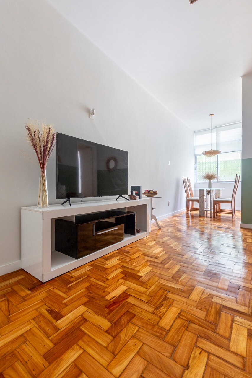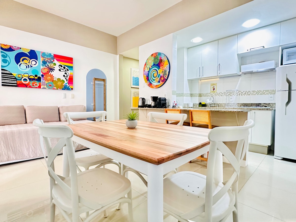 @SvegliaImobialiaria menyewakan apartemen satu kamar tidur dengan ruang tamu yang terletak di pusat dan kawasan wisata. Kamar tidur memiliki tempat tidur queen-size yang nyaman, dan ruang tamu memiliki tempat tidur sofa double dan tempat tidur trundle (dua tempat tidur single). Ada kamar mandi kecil yang melayani ruang tamu. Dapur dilengkapi dengan peralatan lengkap. TV ini pintar dan tidak memiliki kabel. Apartemen ini berjarak 5 menit berjalan kaki ke Pantai Ipanema dan 7 menit berjalan kaki ke Pantai Copacabana.