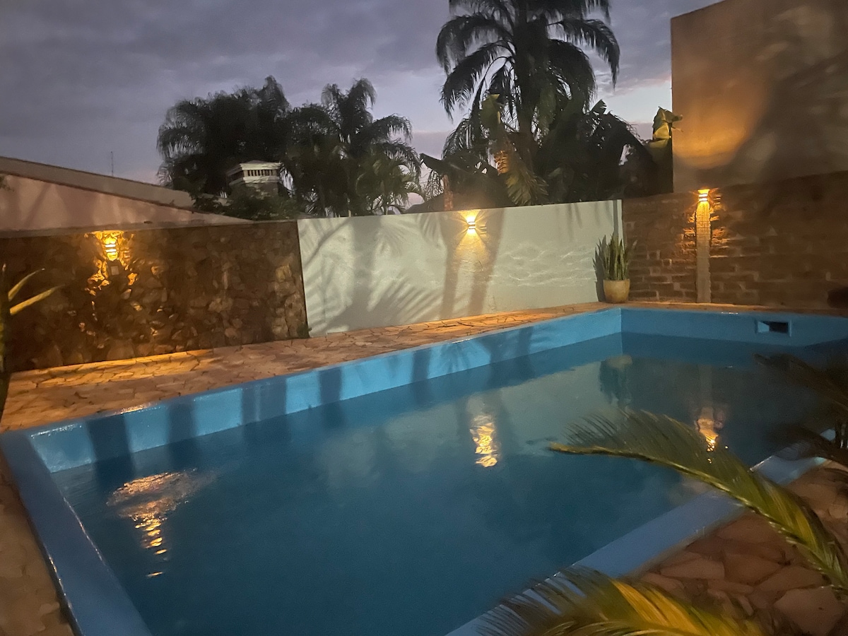 Ruang berada di tengah kota, memiliki kamar dengan 2 tempat tidur double, kasur single dengan AC Split. Tempat ini memiliki Wi - Fi, di ruang tamu memiliki TV pintar, sofa yang bisa ditarik, perapian, dapur lengkap, barbekyu, cucian, kamar mandi, teras, kolam renang. Tempatnya berdekatan dengan supermarket, apotek, stasiun bus, ada taman satu blok jauhnya di mana olahraga bisa dimainkan. Tempat ini berada di Rota do Cristo Protetor!!!