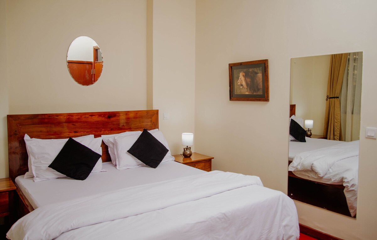 Apartemen dua kamar tidur yang nyaman dengan suasana budaya di Pusat Kota Arusha (dekat Arusha Technical College), menawarkan pemandangan menakjubkan Gunung Meru dan akses mudah ke pasar yang semarak dan sirkuit safari Tanzania. Perkiraan waktu ke lokasi utama: - 8 menit berkendara ke Town/Clock Tower - 20 menit berkendara ke bandara Arusha - 10 menit berkendara ke AICC (Arusha International Conference Center) - 30 menit berkendara ke Danau Duluti -10 menit berkendara ke Arusha Cultural Heritage - 5 menit berkendara ke Terminal Bus Arusha