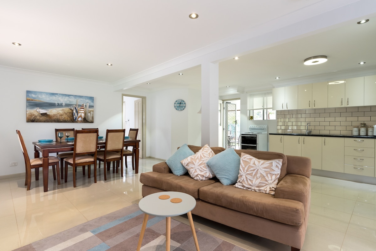 Terletak di tengah-tengah untuk segala sesuatu yang ditawarkan Gold Coast, ini adalah unit mandiri mewah yang baru direnovasi yang mempromosikan nuansa liburan yang segar. Terletak di jalan buntu di lantai dasar rumah kami, unit ini memiliki pintu masuk samping terpisah, wi-fi, carport aman, dan halaman taman lucu untuk menikmati minuman saat matahari terbenam atau kopi pagi Anda. Tempat yang luar biasa untuk beristirahat dan masih begitu dekat dengan semua tempat wisata Gold Coast. Harap perhatikan bahwa sebagai pemilik properti, kami tinggal di atas unit ini.