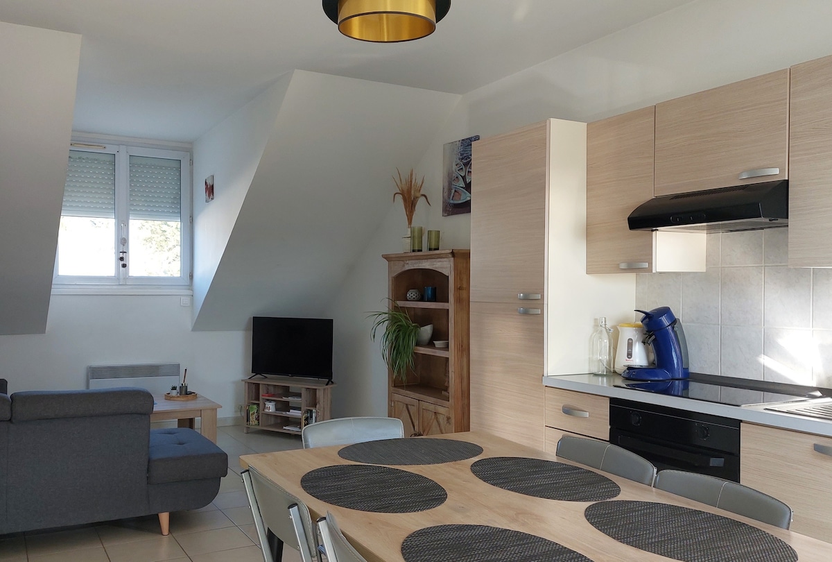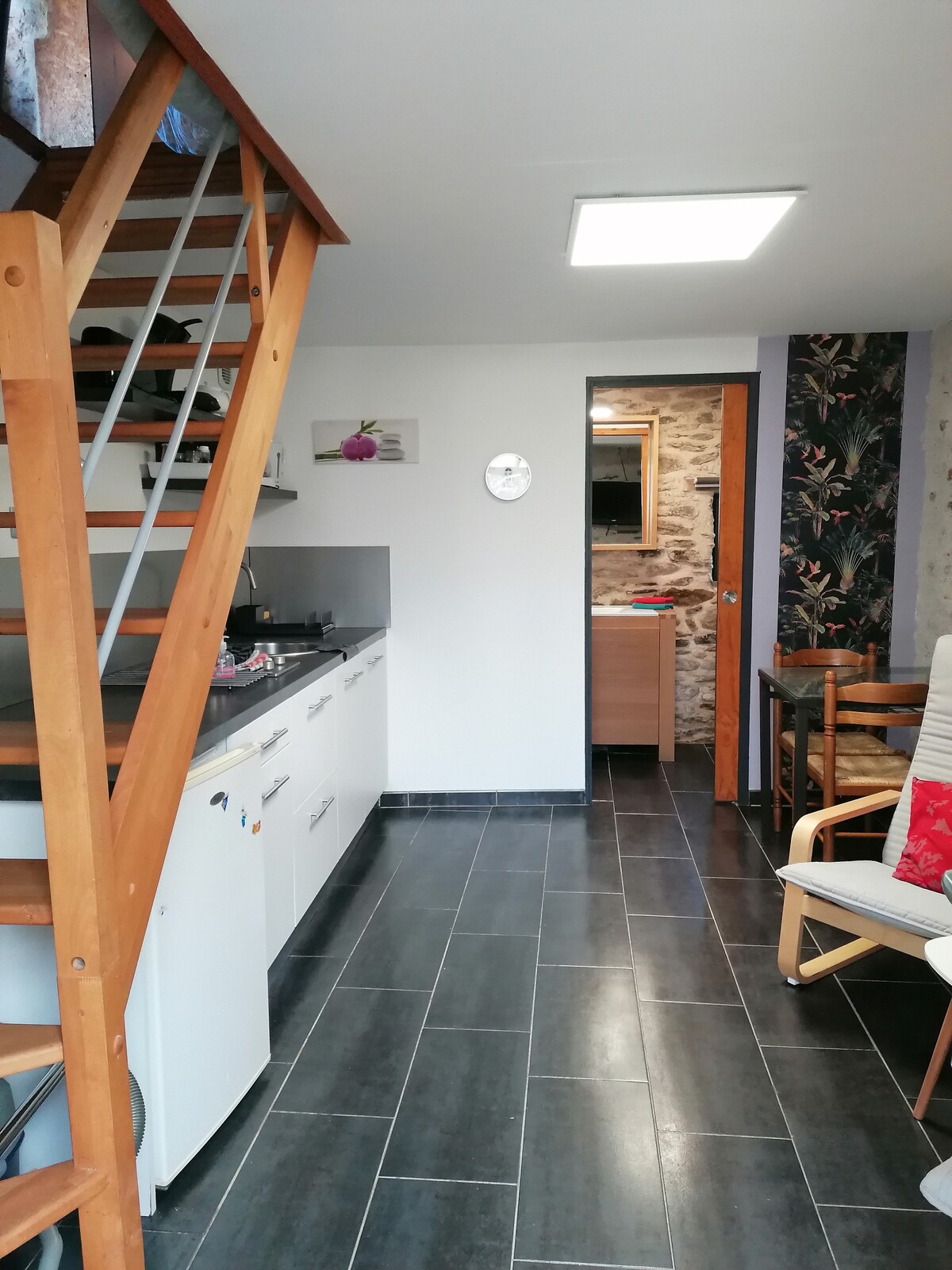 Di properti tua yang luas dan sangat berhutan di mana pemiliknya tinggal, rumah batu independen yang menawan dari tahun 1789, direnovasi dengan selera tinggi, 70 meter persegi di 2 lantai, taman pribadi seluas 150 meter persegi, dapur lengkap, ruang tamu dengan sofa (tidak dapat dikonversi), ruang kantor, kamar tidur dengan AC dan tempat tidur 180, 2 kamar mandi, ruang cuci pakaian. WiFi. Parkir di properti yang diamankan oleh gerbang bermotor, ruang sepeda (pengisian daya sepeda listrik). Di tengah Asserac, 10 menit dari Guerande dan pantai Mesquer, 20 menit dari La Baule.