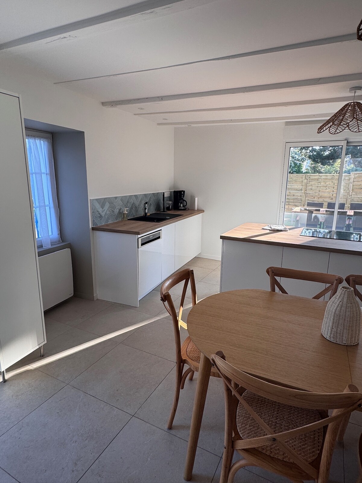 Selamat datang di rumah menawan yang direnovasi sepenuhnya seluas 110 m2 ini, yang idealnya berlokasi 3 menit berjalan kaki dari pantai! Sangat cocok untuk liburan di tepi pantai, rumah ini menggabungkan kenyamanan modern dengan suasana hangat untuk membuat Anda merasa seperti di rumah. Rumah yang luas dan terang ini terdiri dari 3 kamar tidur yang nyaman, ruang tamu yang nyaman dengan tempat tidur sofa, dapur lengkap, kamar mandi modern dengan bak mandi dan shower, dua toilet dan taman yang menyenangkan.
