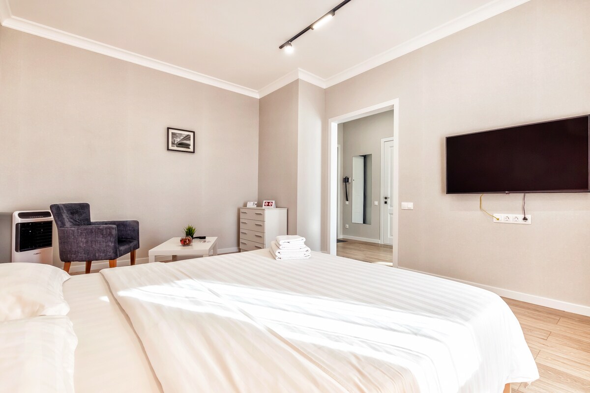 Selamat datang di apartemen 1 kamar tidur yang nyaman di pusat Astana! Dalam jarak berjalan kaki - Baiterek, Khan-Shatyr, Asia Park, Mega Silk Way. Jendela menghadap halaman — kedamaian dan ketenangan. Apartemen ini memiliki tempat tidur dan sofa yang nyaman, dapur dengan peralatan dan perlengkapan, Wi-Fi, AC, mesin cuci, balkon yang luas 6 m². Kami peduli dengan kebersihan dan kenyamanan: seprai bersih, tertata, tanda terima fiskal. Sangat cocok untuk pasangan, tamu, dan perjalanan bisnis.