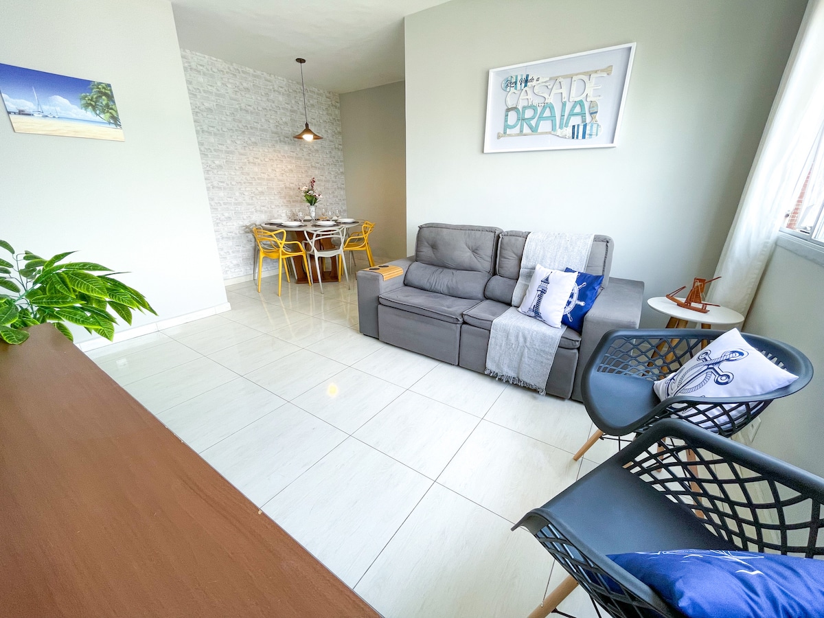 Apartemen yang indah, baru, bersih, dan berventilasi baik. Kondominium ini memiliki layanan pantai dan area rekreasi yang lengkap. Ada 3 kamar tidur dan 2 kamar mandi, satu en - suite dengan tempat tidur kotak queen dan 2 kamar tidur lainnya dengan tempat tidur kotak single identik, yang bisa disatukan. Tempat ini memiliki 2 tempat parkir, AC di semua kamar tidur dan di ruang tamu. Lokasinya sempurna. Lokasinya 2 blok dari trotoar pantai Enseada, dikelilingi restoran, apotek, supermarket, toko. Anda bisa melakukan segalanya dengan berjalan kaki.