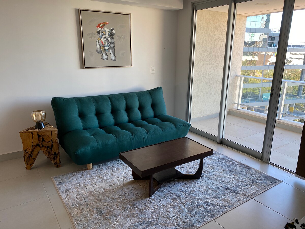 Apartemen yang benar - benar baru di gedung mewah. Tempat ini memiliki luas 40m², dengan Smart TV, WIFI, dan di gedung ini Anda memiliki semua fasilitas: Kolam renang , quincho ber - AC dengan pemanggang, ruang bermain anak - anak, gym lengkap, dll. Jaraknya 5 menit berkendara ke pusat perusahaan yang paling berharga di ibu kota, dan 25 menit berjalan kaki. Tempat ini juga berjarak 11 menit dengan mobil ke bandara Silvio Pettirossi. Tempat ini memiliki tempat tidur double + tempat tidur sofa. Secara total, Anda bisa tidur hingga 3 orang.