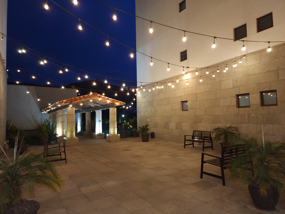 Selamat datang di tempat Anda di dunia, di ID Vertical Satellite ✨ Nikmati sudut yang tenang dan indah yang menghadap taman pusat, cocok untuk bersantai dengan kopi atau minuman favorit Anda. Anda hanya beberapa langkah dari Plaza Mundo E dan 1 menit dari pinggiran, dengan akses cepat ke pusat perbelanjaan, restoran, dan segala yang Anda butuhkan untuk masa inap Anda. Di sini Anda akan menemukan kombinasi ideal dari kenyamanan, lokasi, dan istirahat.