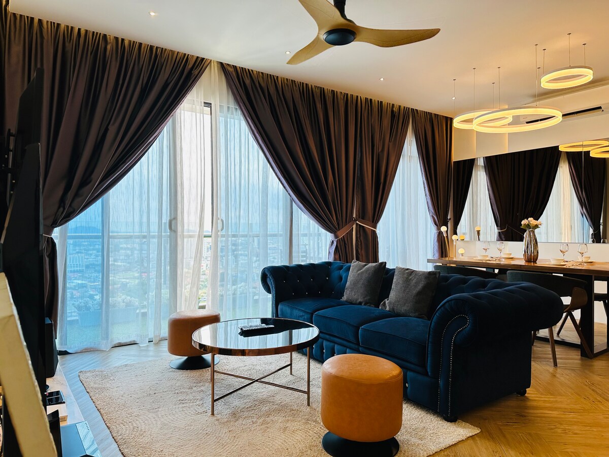 Gold Elegance Residence Selamat datang di apartemen tiga kamar tidur yang luas dan mewah ini, dilengkapi dengan Wi - Fi, TV pintar, dan fasilitas dapur terbaik. Desainnya ramping dengan garis - garis emas, serta menghadirkan suasana bangsawan & keanggunan. Interiornya dilengkapi dengan taman yang indah & bisa menampung 9 -11 tamu, memberikan pengalaman hidup yang nyaman Kami dikelilingi oleh berbagai kelezatan kuliner, toko serba ada, bar, panti pijat, yang menawarkan Anda akses mudah ke waktu luang dan hiburan.