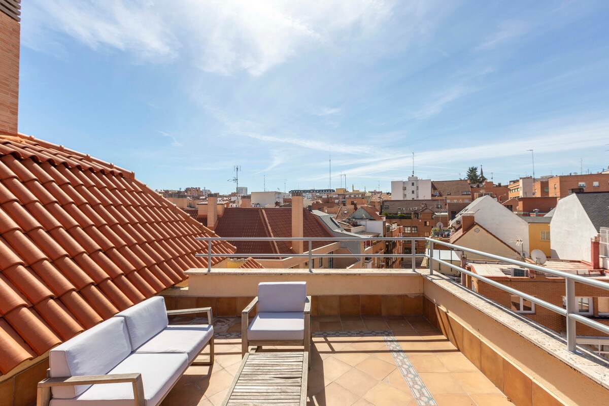 Penthouse/dupleks super terang dan luas di pusat kota Madrid, sepenuhnya eksterior dan dilengkapi dengan dua teras pribadi, parkir pribadi dan kolam renang (buka dari pertengahan Juni hingga pertengahan September). Ideal untuk wisatawan yang mencari tempat yang tenang untuk beristirahat di malam hari namun berlokasi di pusat kota dan dalam jarak berjalan kaki dari opsi rekreasi. Tidak perlu repot sampai di sini dengan mobil karena terletak di luar area terlarang lalu lintas yang disebut 'Madrid Central '.