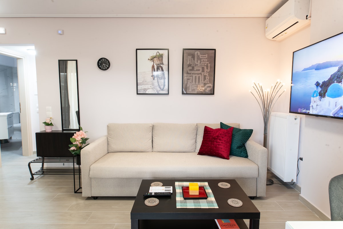 Suite minimalis, baru direnovasi 10 menit dari bandara. Suite ini memiliki kamar mandi pribadi, balkon, taman, dan pemandangan yang menakjubkan. Desainnya yang elegan dan gaya modern akan memberikan Anda pengalaman menginap yang tak terlupakan. Terletak di atas bukit, sangat dekat dengan: - Metropolitan Expo (10 menit), - pelabuhan Rafina (15 menit), - Smart Park - Kebun Binatang - Stasiun Metro Ideal untuk liburan, belanja, perjalanan bisnis, atau orang-orang yang ingin bekerja secara digital dengan wifi yang cepat dan gratis.