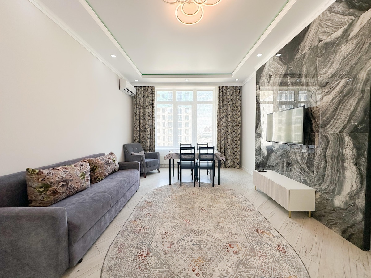 Apartemen Kelas Bisnis "Zaman" yang nyaman pada tahun 2021. 4 tempat tidur, tempat tidur double 160*200, + sofa lipat, tempat tidur double penuh. Dapur dengan set dapur lengkap dan piring. Internet tanpa batas, dalam jarak berjalan kaki dari kantor TCO, Schlumberger, pusat perbelanjaan Bazaar. Dilarang merokok di dalam apartemen, di balkon, membawa hewan peliharaan, dan berisik di malam hari mulai pukul 22.00 hingga 09.00.