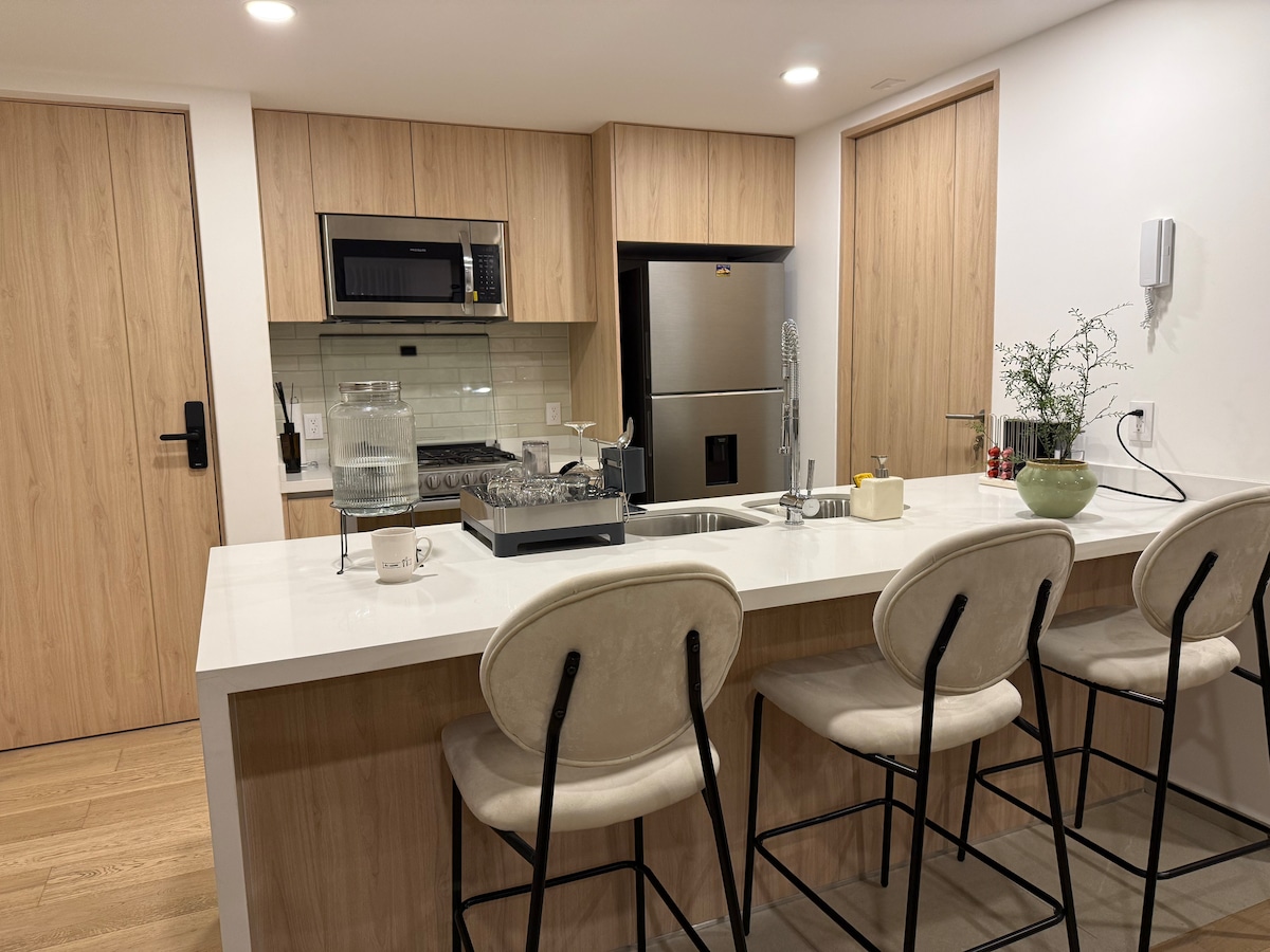 Apartemen 3KT yang nyaman di dekat Parque México|Kolam renang & Gym