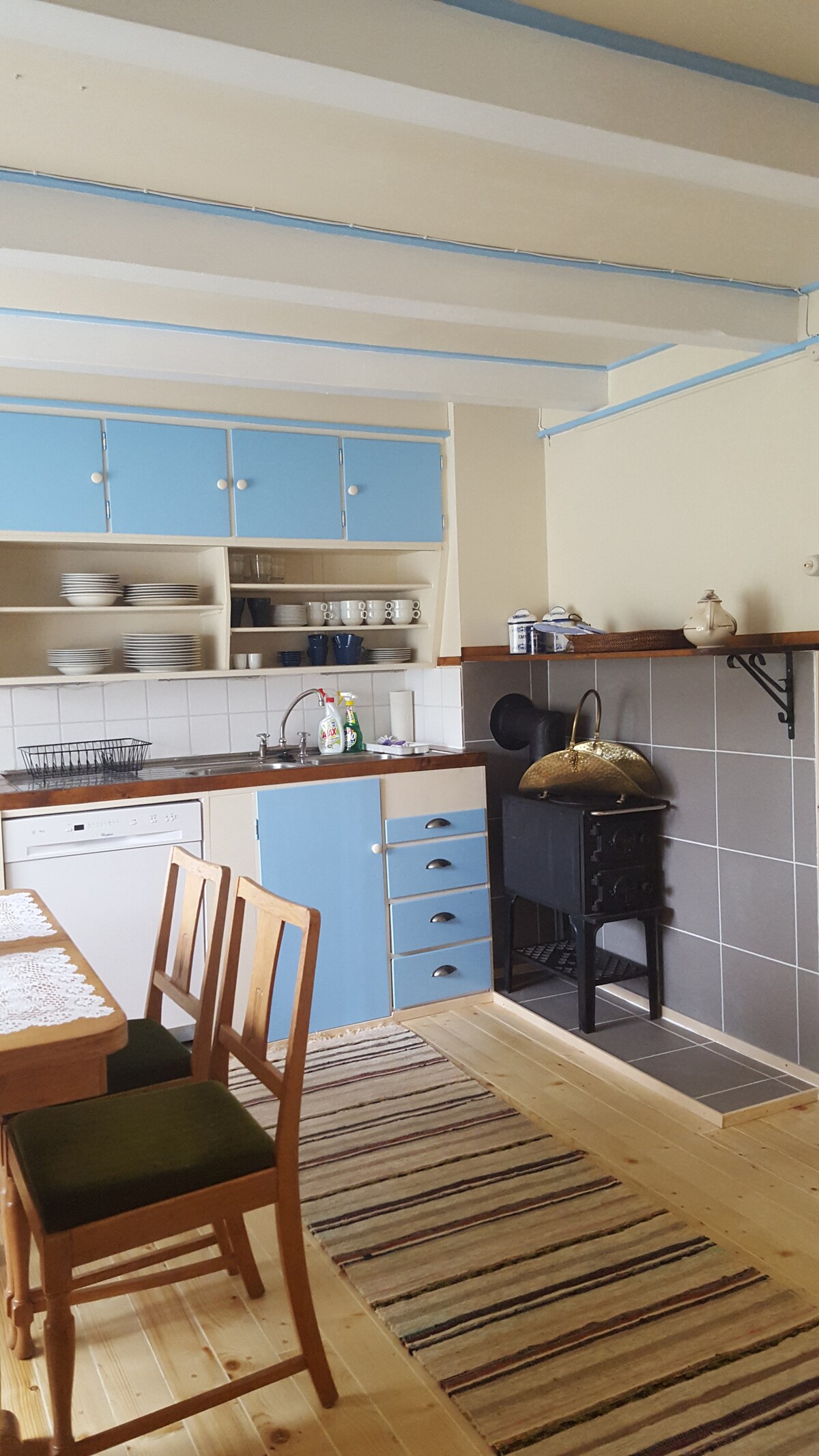 Kabin dengan lokasi yang fantastis tepat di tepi laut. Kabin ini memiliki 3 kamar tidur (6 tempat tidur) secara bersama-sama. 2 di dalam kabin, dan satu di bangunan tambahan. Semua pengaturan tempat tidur memiliki ruang untuk dua orang. (Tempat tidur ganda) dapur tetapi mesin cuci piring, dan ruang tamu dengan sofa dan ruang makan. Kamar mandi dengan toilet, pancuran dan mesin cuci dan pengering . Patio yang bagus. Barbekyu dan perapian. Tempat ini memiliki matahari terbenam yang indah, SUP, tempat tidur gantung. Dan