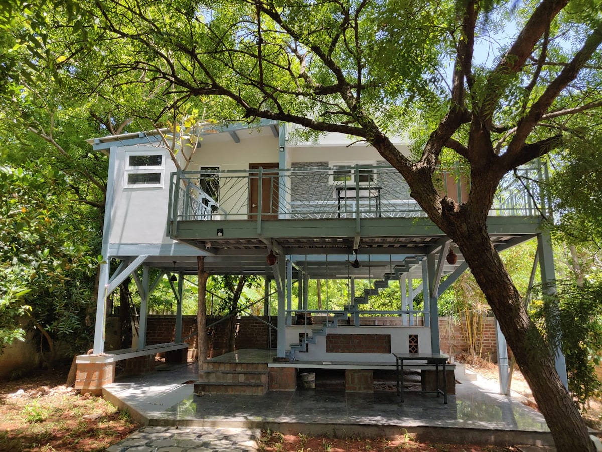 This Mystical Mudhouse was completely built with natural materials like Mud bricks, natural stones, traditional athangudi tiles, breathable walls with an exposed finish to support the environment. It’s a private room in the ground floor comes with attached bathroom, free hi-speed wifi internet, complimentary breakfast, toiletries. It has king size comfy bed with duvet, AC, wooden desk with chain, Bottle of Alkaline water/RO. Extra pillow can be given on request for your comfy sleep.